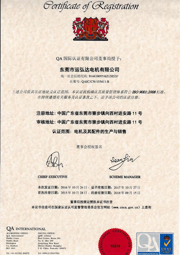 從開公司到現(xiàn)在,一直和運弘達合作,運弘達電機質(zhì)量非常好,都遵守ISO9001:2008質(zhì)量控制體系,我們很放心,并于貴公司建立良好的合作關系!還有優(yōu)質(zhì)的售后服務,遇到問題總能第一時間幫我們解決,非常感