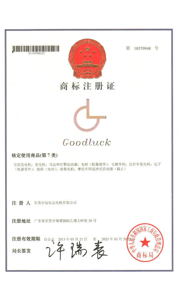 運弘達商標注冊證